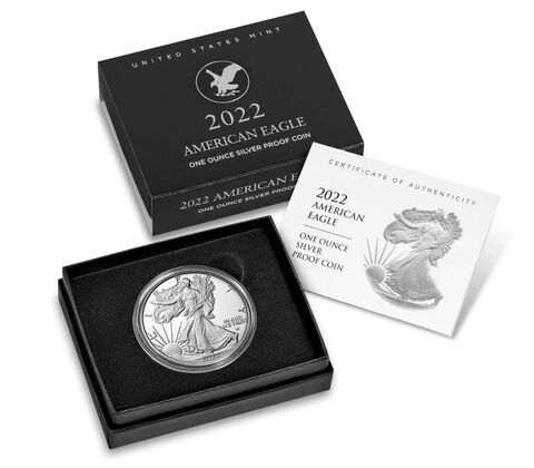 The 2022 American Eagle Silver Proof from San Francisco features classic Walking Liberty design in .999 fine silver. Delivered in original Mint packaging with certificate of authenticity.